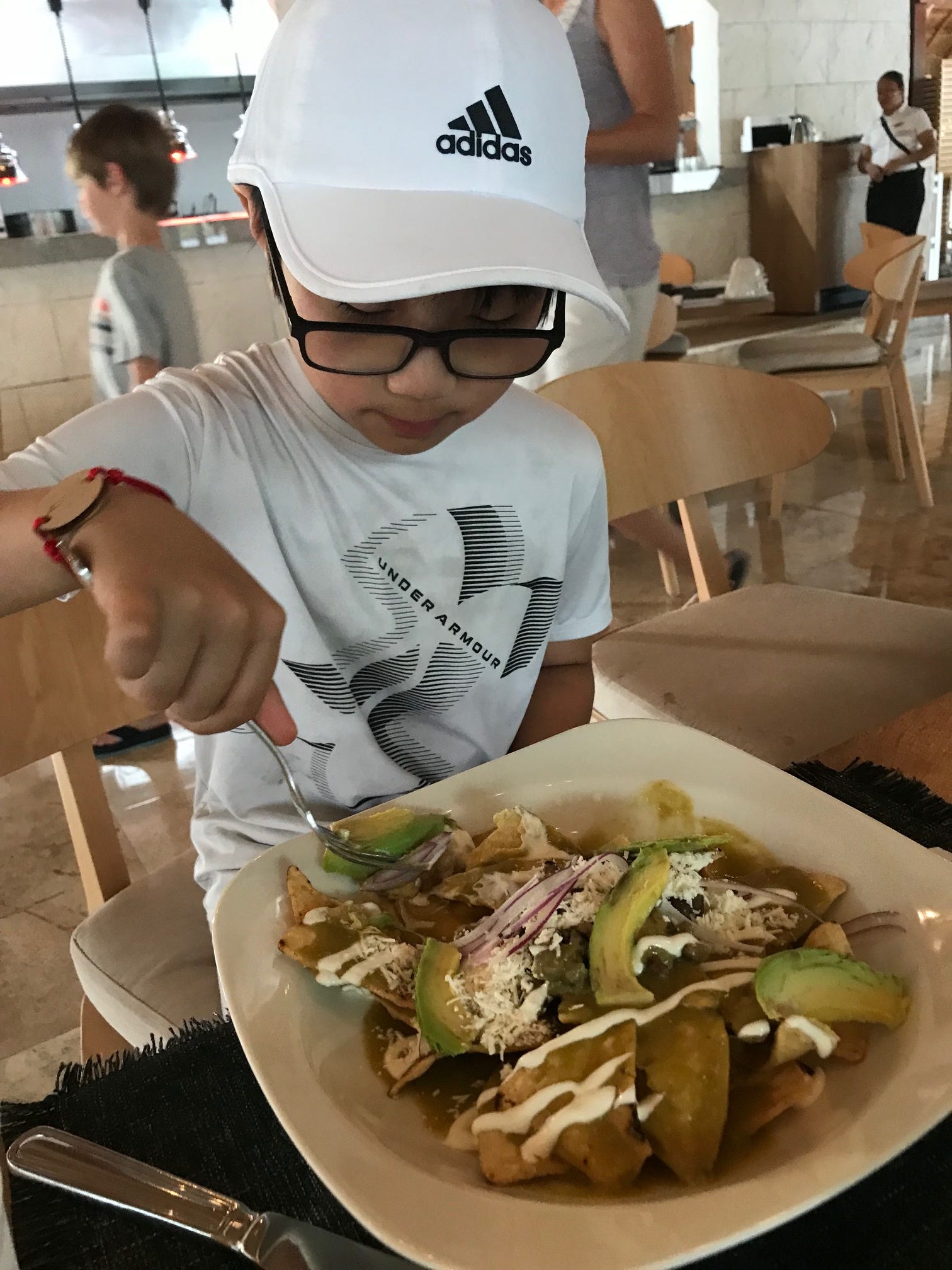 Here’s a pic of my great kid eating chilaquiles.